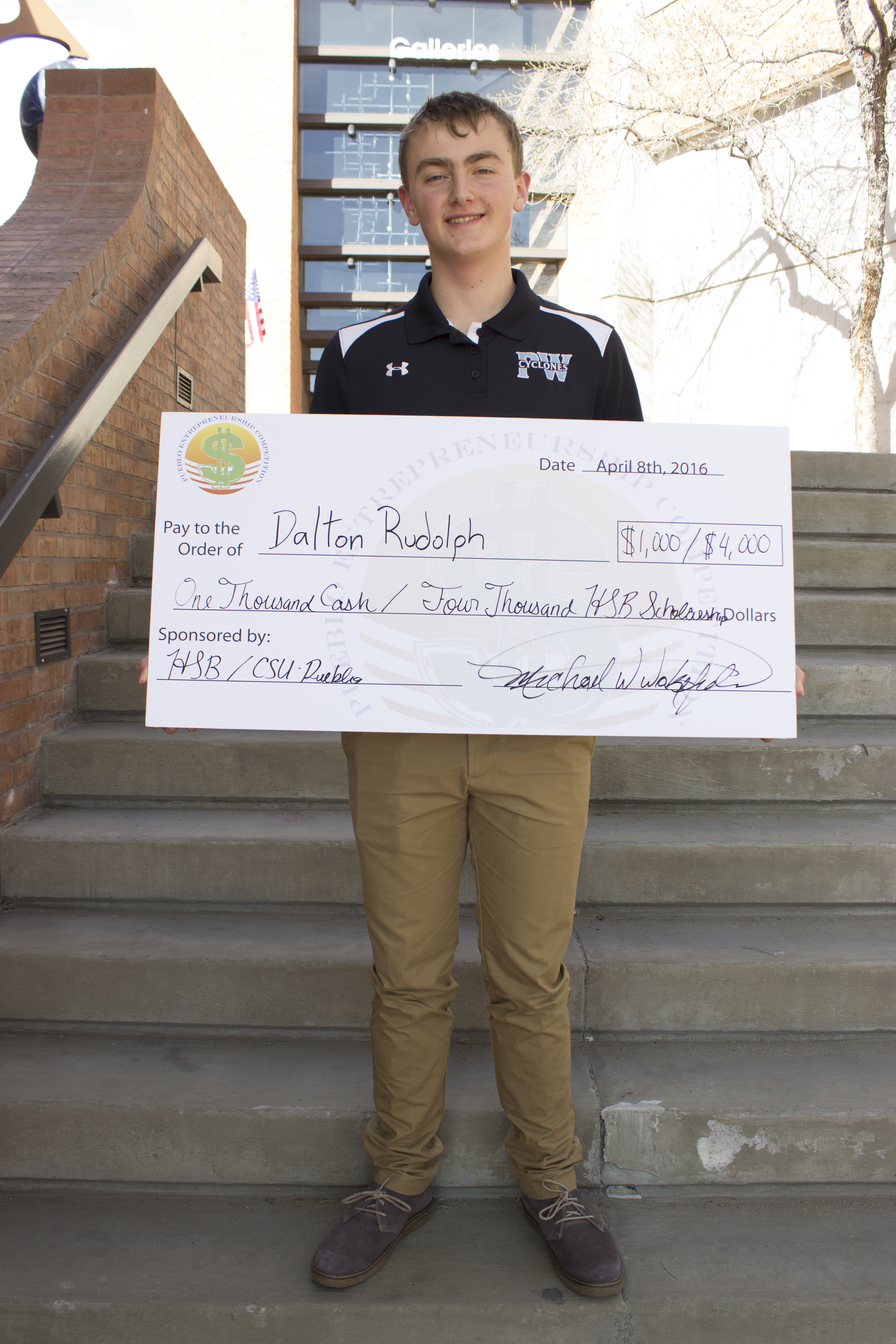 Dalton R. of Pueblo West High School presented his business idea of "Cyclone Cinema". Presenting movies for the local community at the high school, which the judges were extremely impressed. He received a scholarship and $1,000 cash.